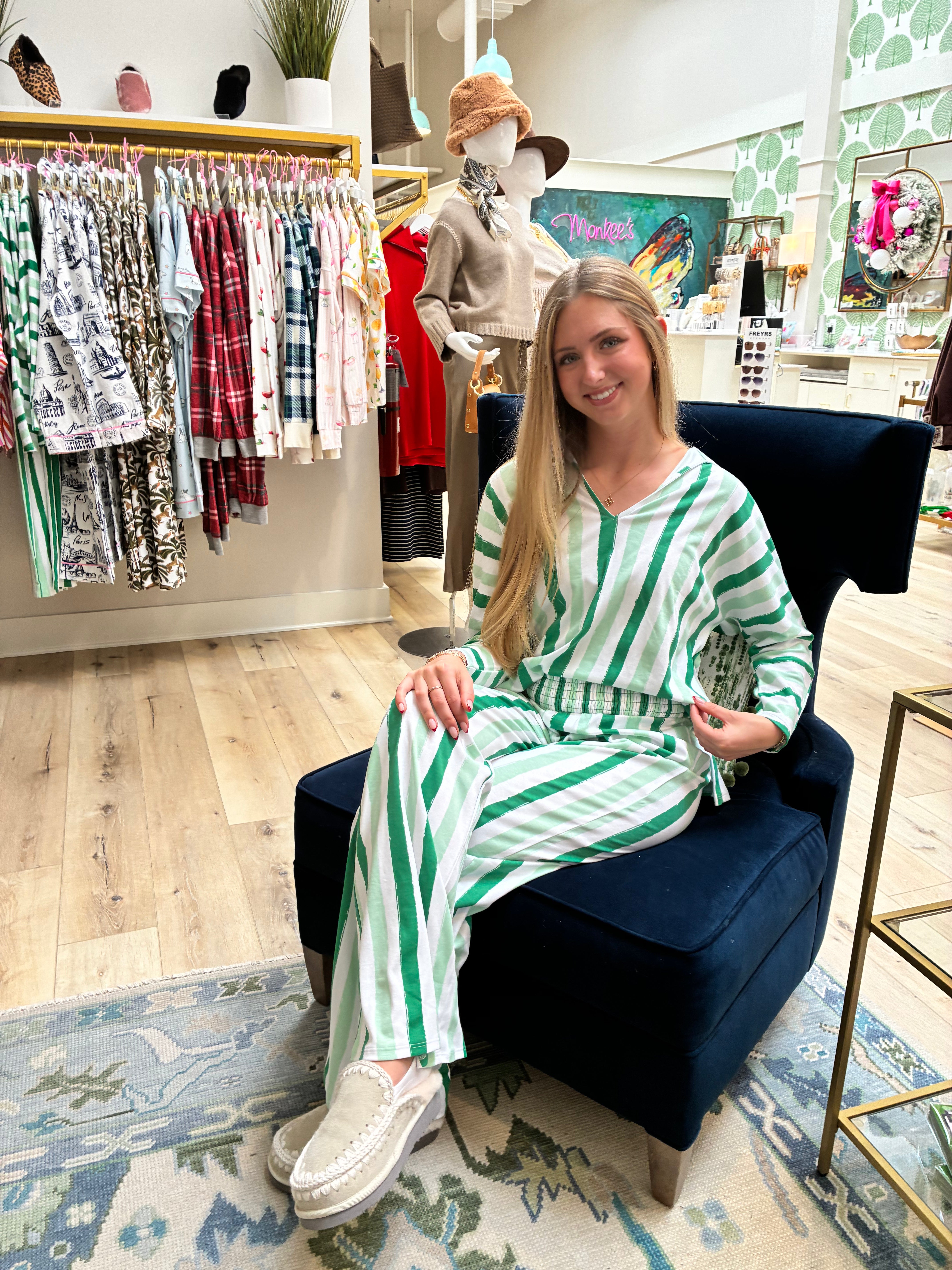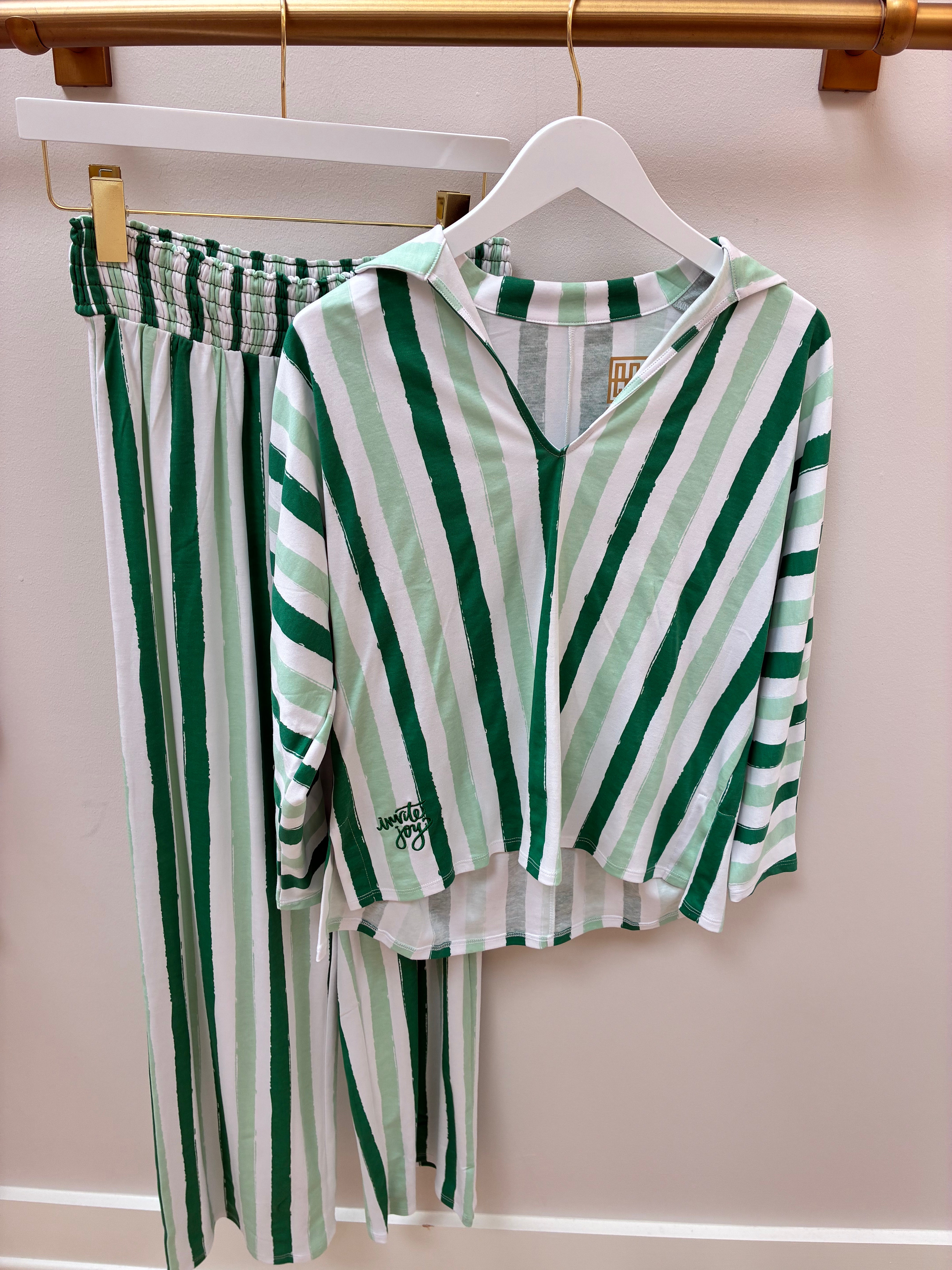 Soft, simple, and effortlessly chic — the Pajama Pant Set in Mist Green is made for relaxing in style. With its silky smooth feel and easy, relaxed fit, this matching set is perfect for cozy nights in or slow Sunday mornings. The soft misty green hue adds a touch of calm to your lounge look, making it a must-have for comfort and charm.