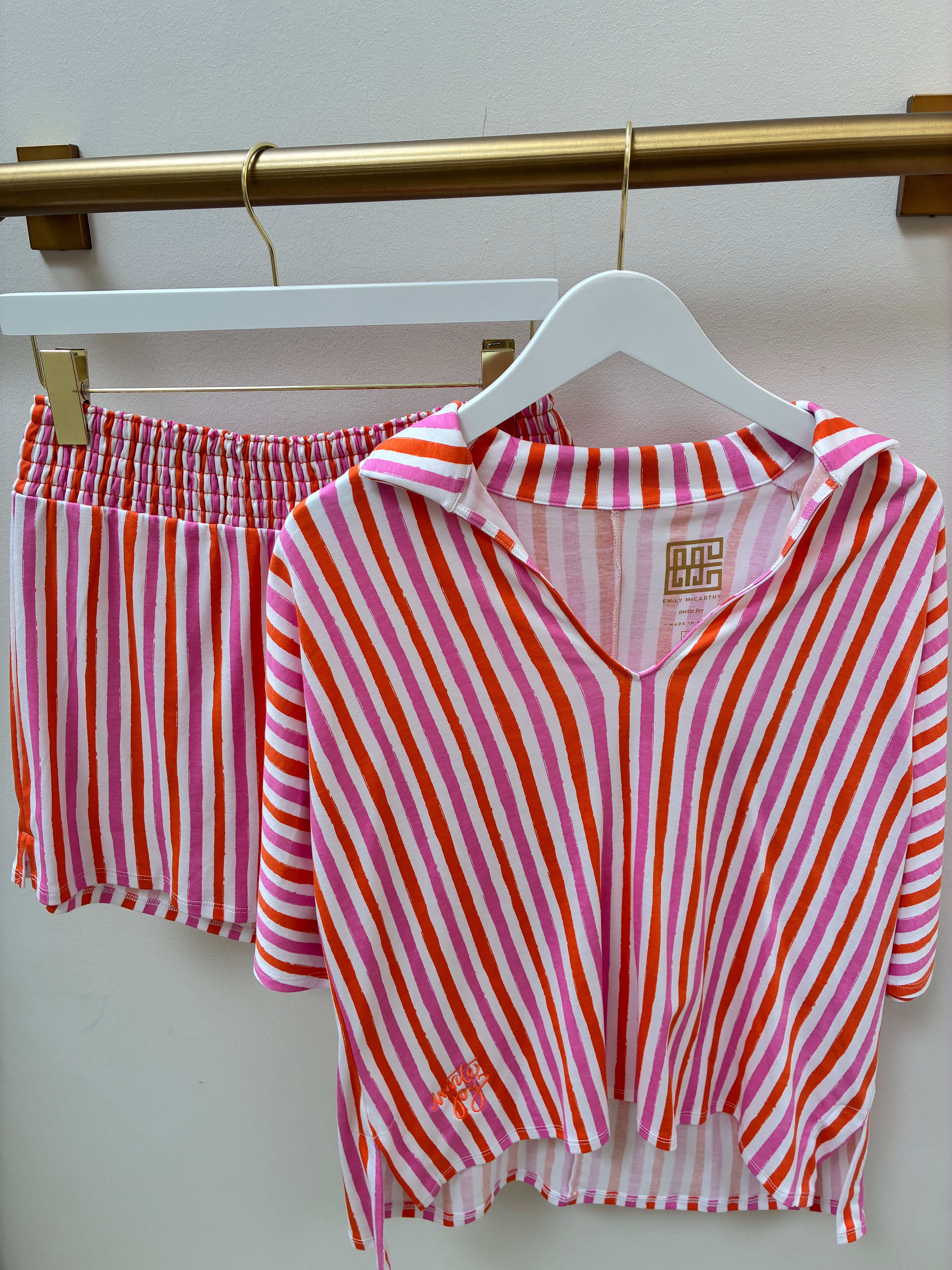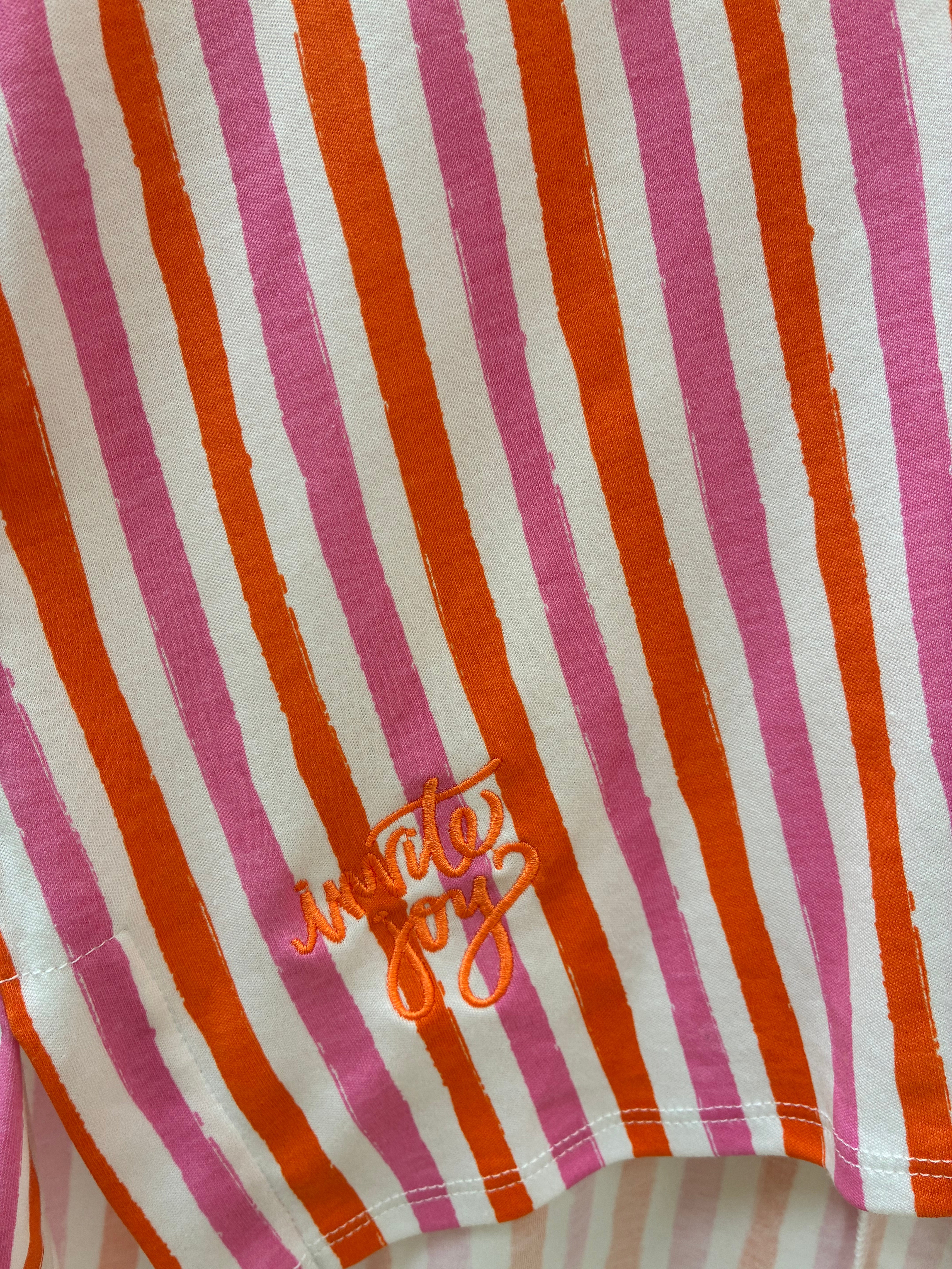 Sweet dreams start here! The Pajama Short Set in Coral Pink Stripe is your go-to for cozy nights and lazy mornings. Made from soft, breathable fabric with a relaxed fit, this matching set is as cute as it is comfortable. The cheerful coral pink stripes add a pop of color that feels fresh and fun — perfect for lounging, gifting, or weekend getaways.