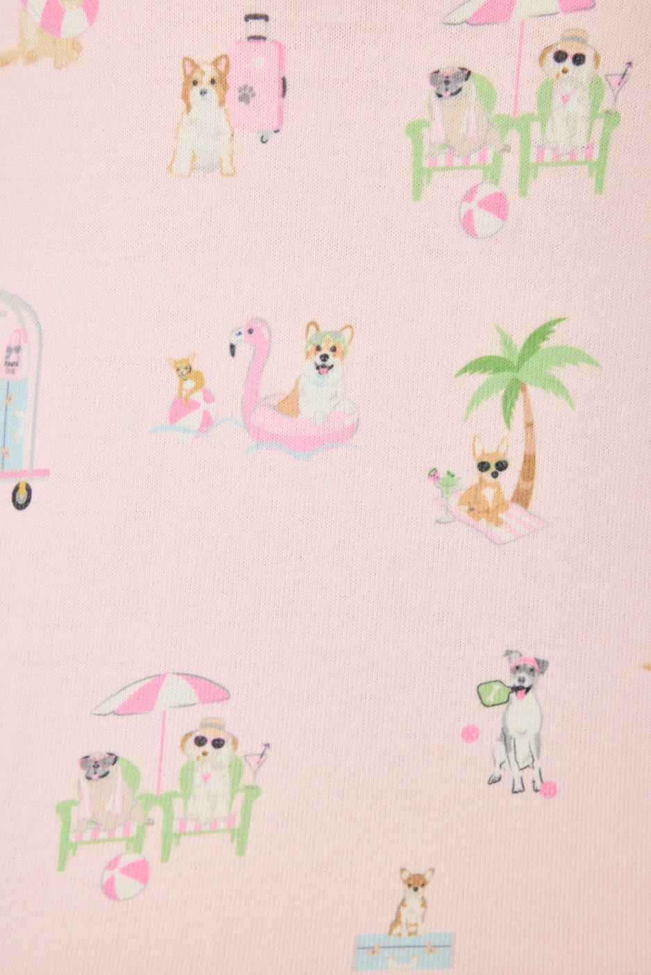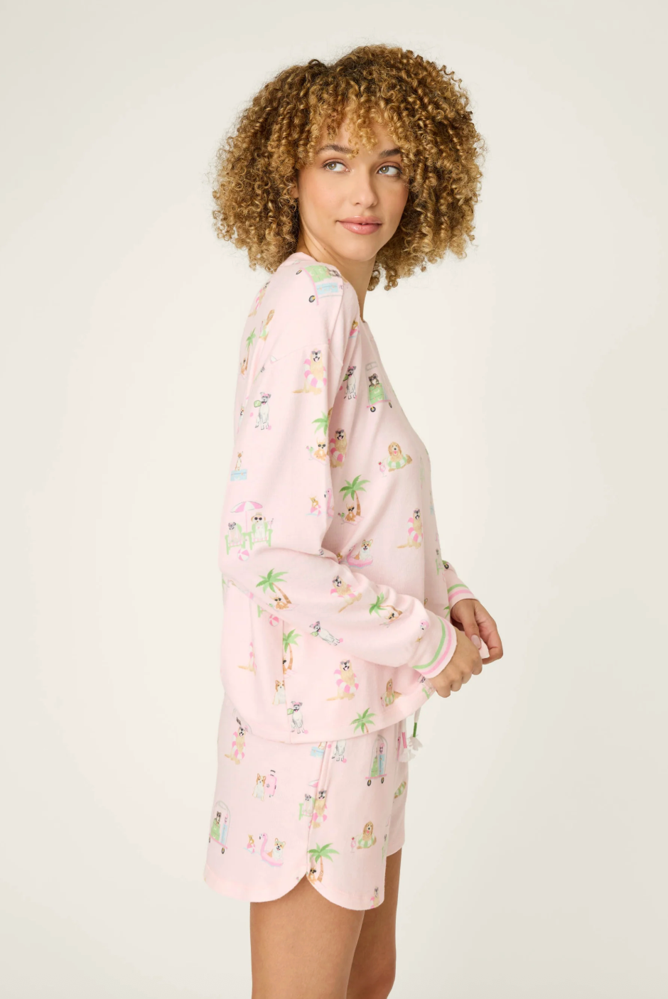 Easy, playful, and undeniably pup-loving, this PJ set brings cozy comfort with a dose of personality. Crafted in peachy jersey, the relaxed fit is finished with striped banded cuffs and a cheerful vacation dog print that makes downtime feel a little more fun.