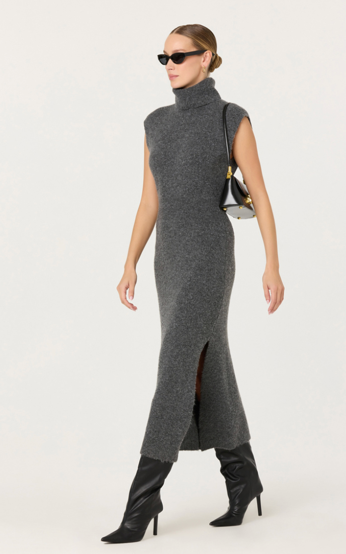 Cozy meets effortlessly chic. The Roxanna Sweater Dress in Charcoal features a soft knit texture, a flattering silhouette, and an easy throw-on style that works for everything from brunch to date night. The rich charcoal hue keeps it classic and versatile — perfect with boots, tights, or your favorite statement accessories. Comfort and style, all wrapped into one must-have fall dress.