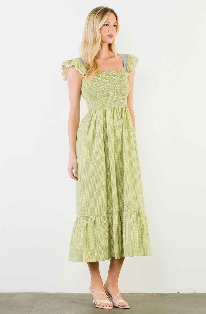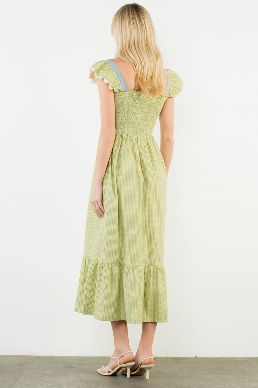 Ruffle Sleeves Smocked Tiered Dress in Green