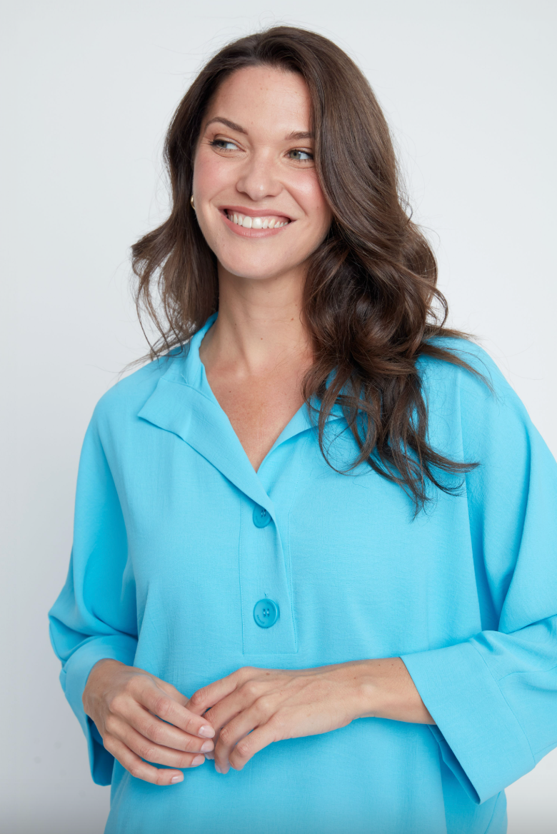 Stay cool and stylish with our Renuar Button Airflow Blouse! Made with 100% polyester, this blouse features buttons and a classic collar. Perfect for any occasion, this blouse combines comfort and fashion effortlessly.