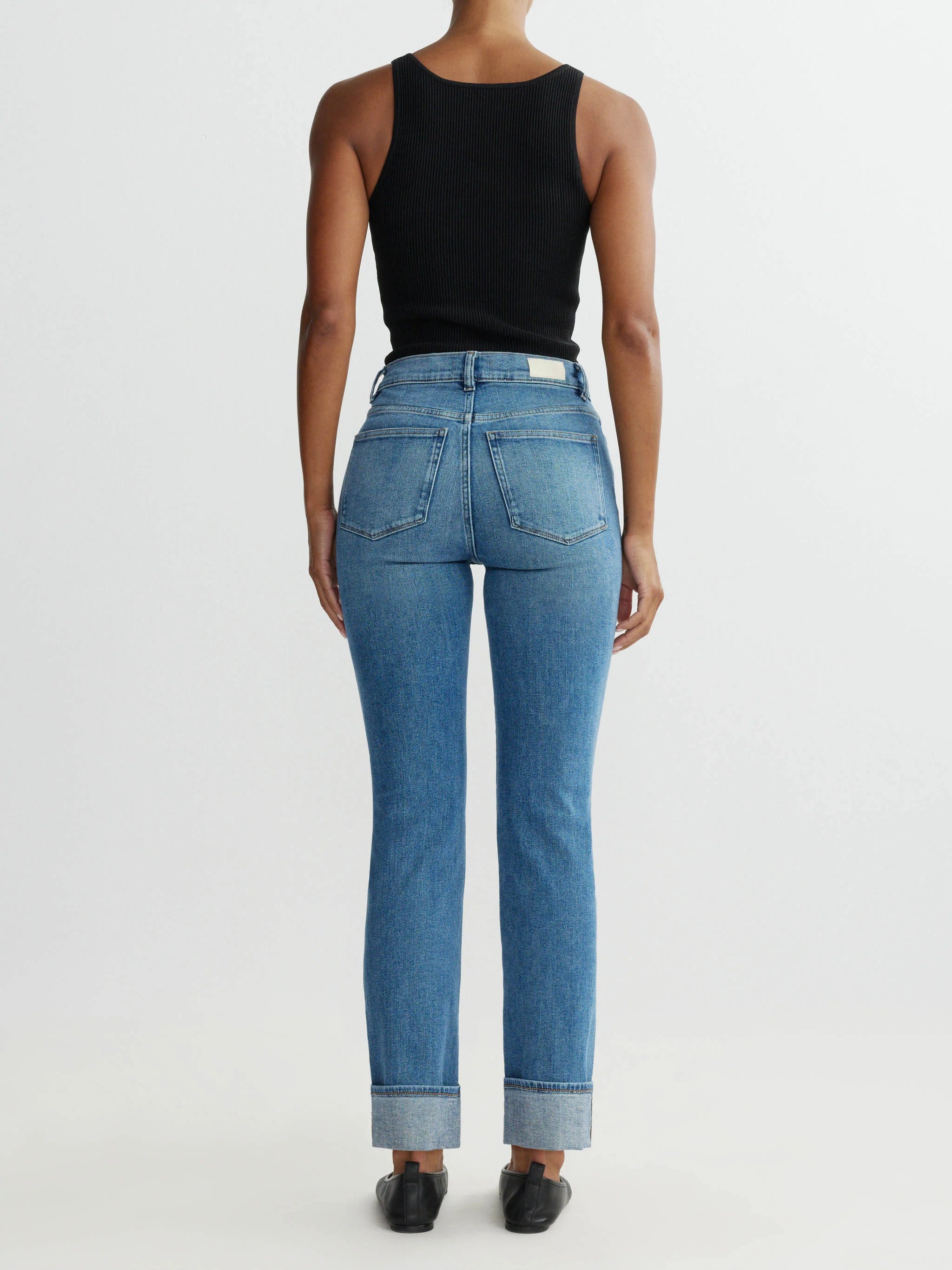 Relaxed yet refined, the Halle Straight Jean is designed with a high rise and classic straight leg for an effortlessly cool fit. The Spring Creek wash delivers a soft vintage-inspired blue that feels timeless and easy. A perfect everyday jean that balances structure with comfort.