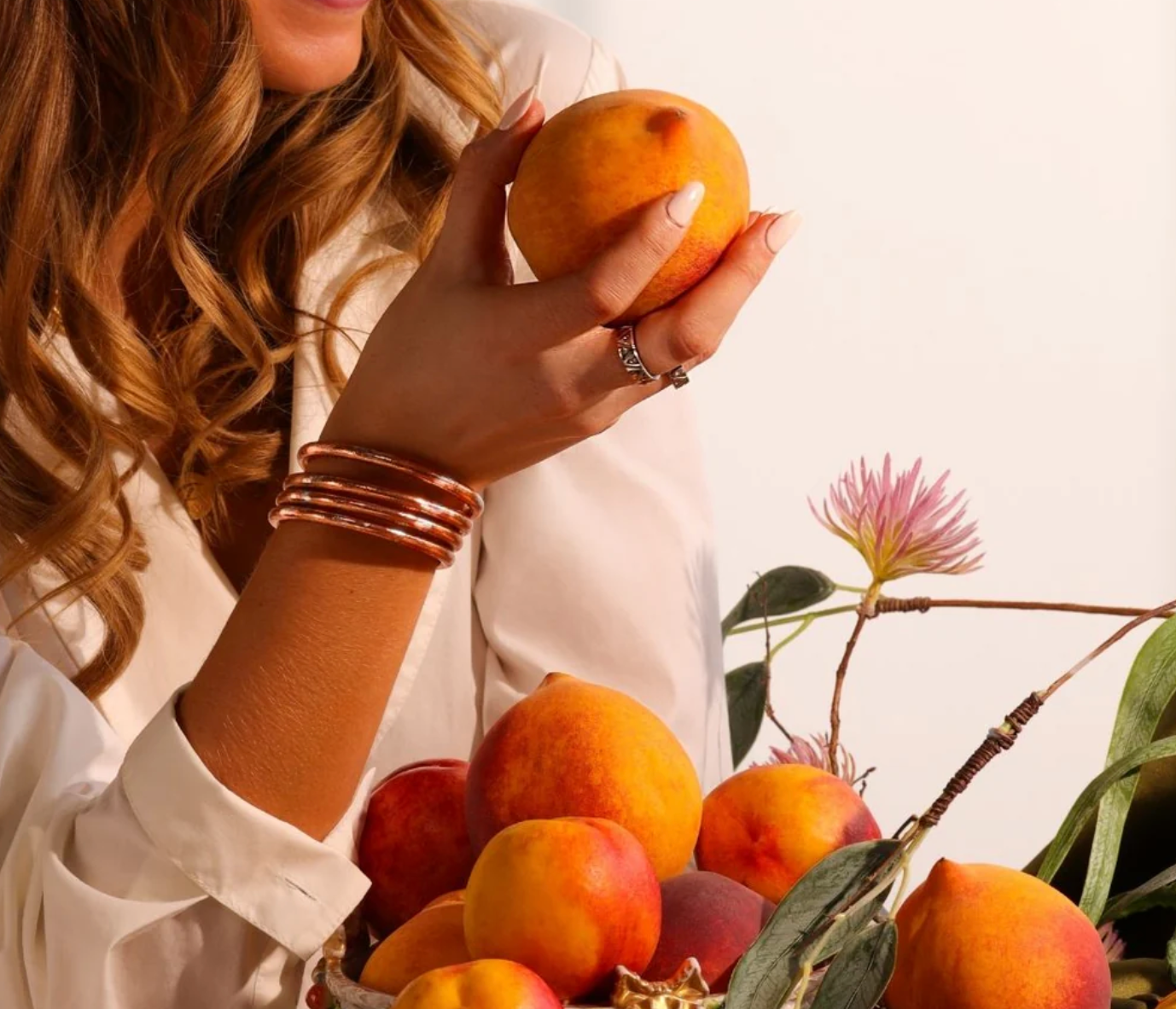 KOI Pêche All Weather Bangles® are a luminous tribute to nature’s fleeting grace—a mindful embrace of warmth, elegance, and inner serenity. This delicate hue, kissed with soft notes of sun-ripened peach and petal-pink undertones, whispers of early morning light, orchard breezes, and the quiet joy of stillness.