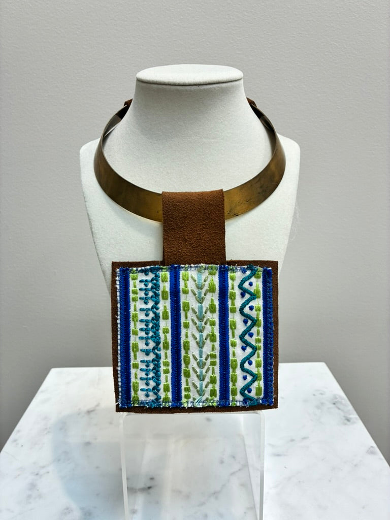 Orijinal Embroidered Kilim Pendant Necklace Blue/Green
