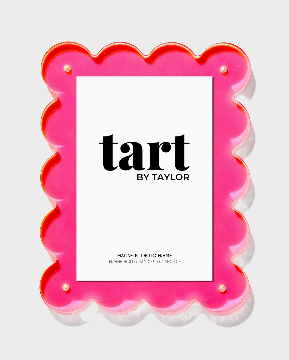 Display your favorite photos in style with this acrylic picture frame! It features a magnetic border to securely hold your cherished pictures as well as adding a stylish touch. Perfect for giving your home a fun and unique look! 🤩