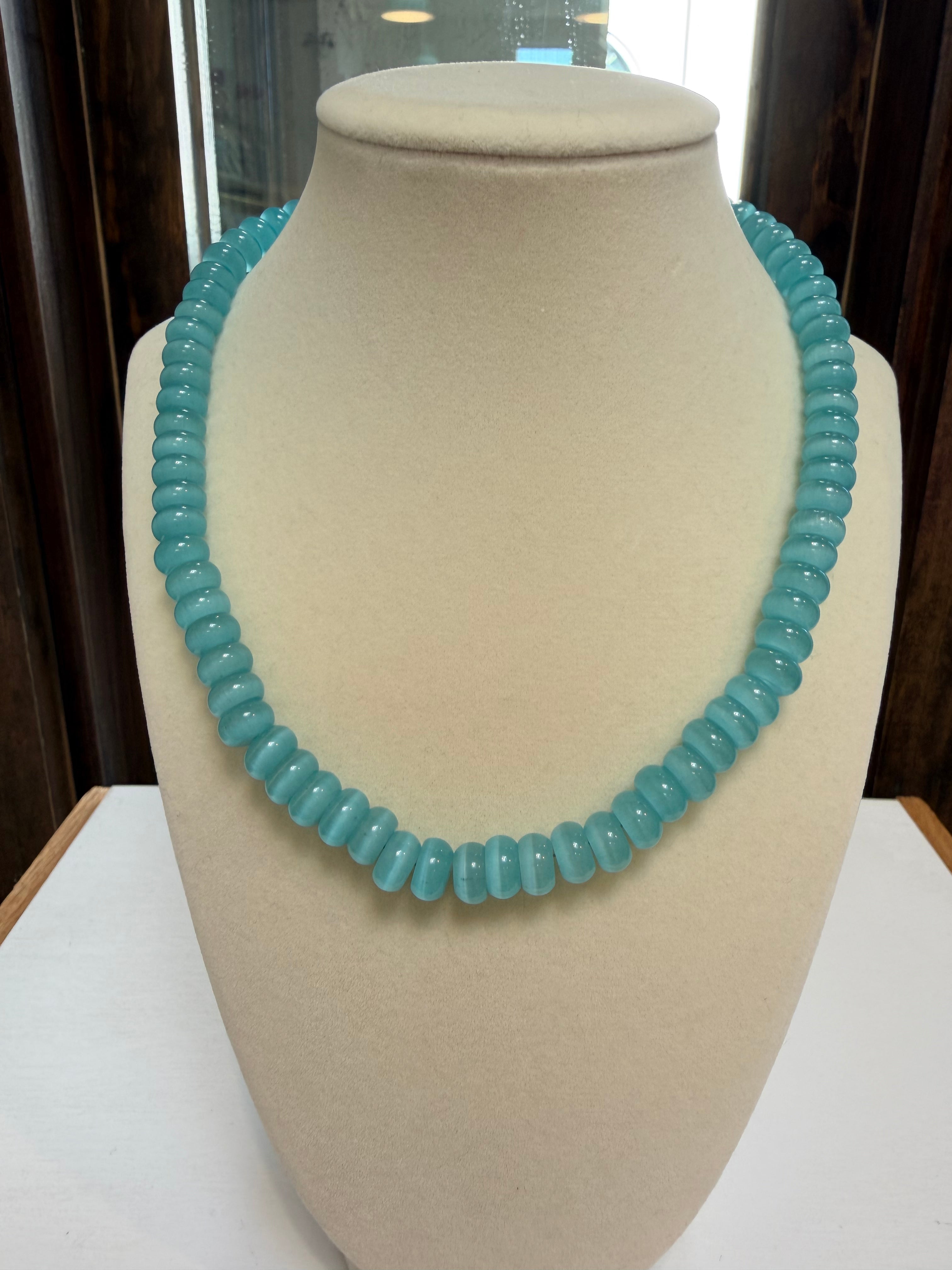 Rondelle 18" Necklace Sm Swivel Clasp- Aqua Cat