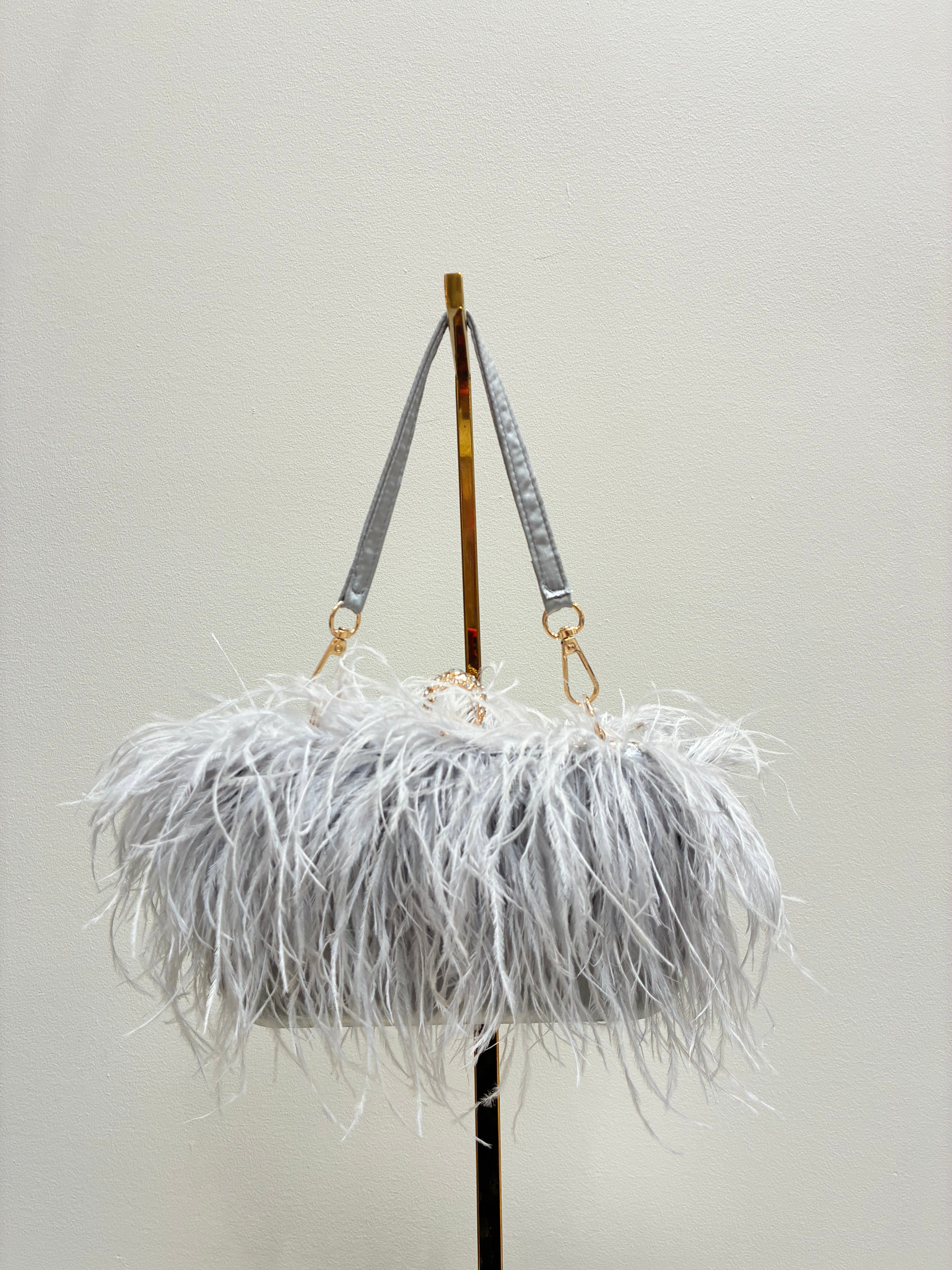 Add a statement accessory to your look with this feather bag featuring a removable strap for two ways to wear.