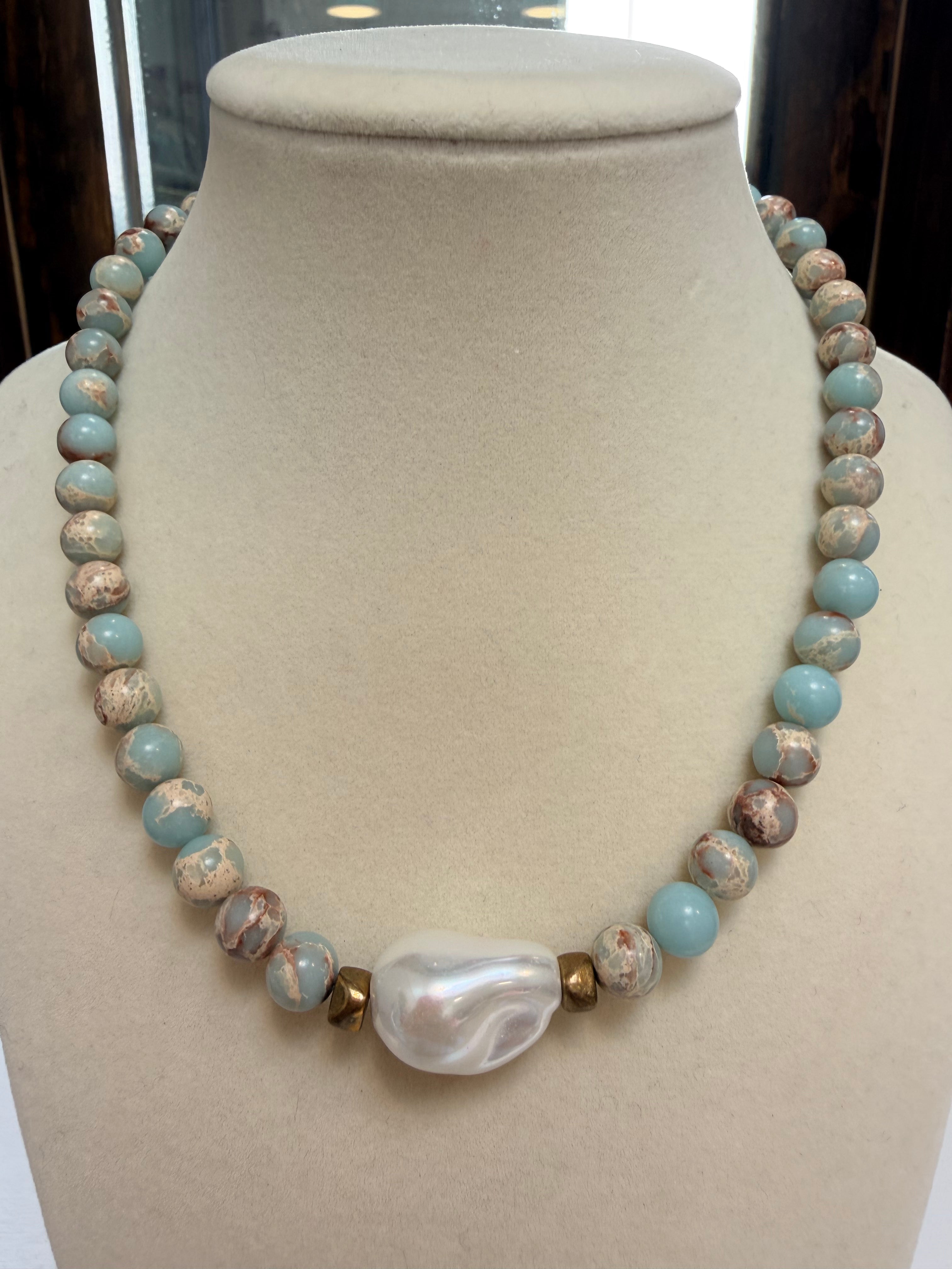 The Kamryn LUXE Sea 8mm Gemstone Baroque Shell Pearl Necklace 16”