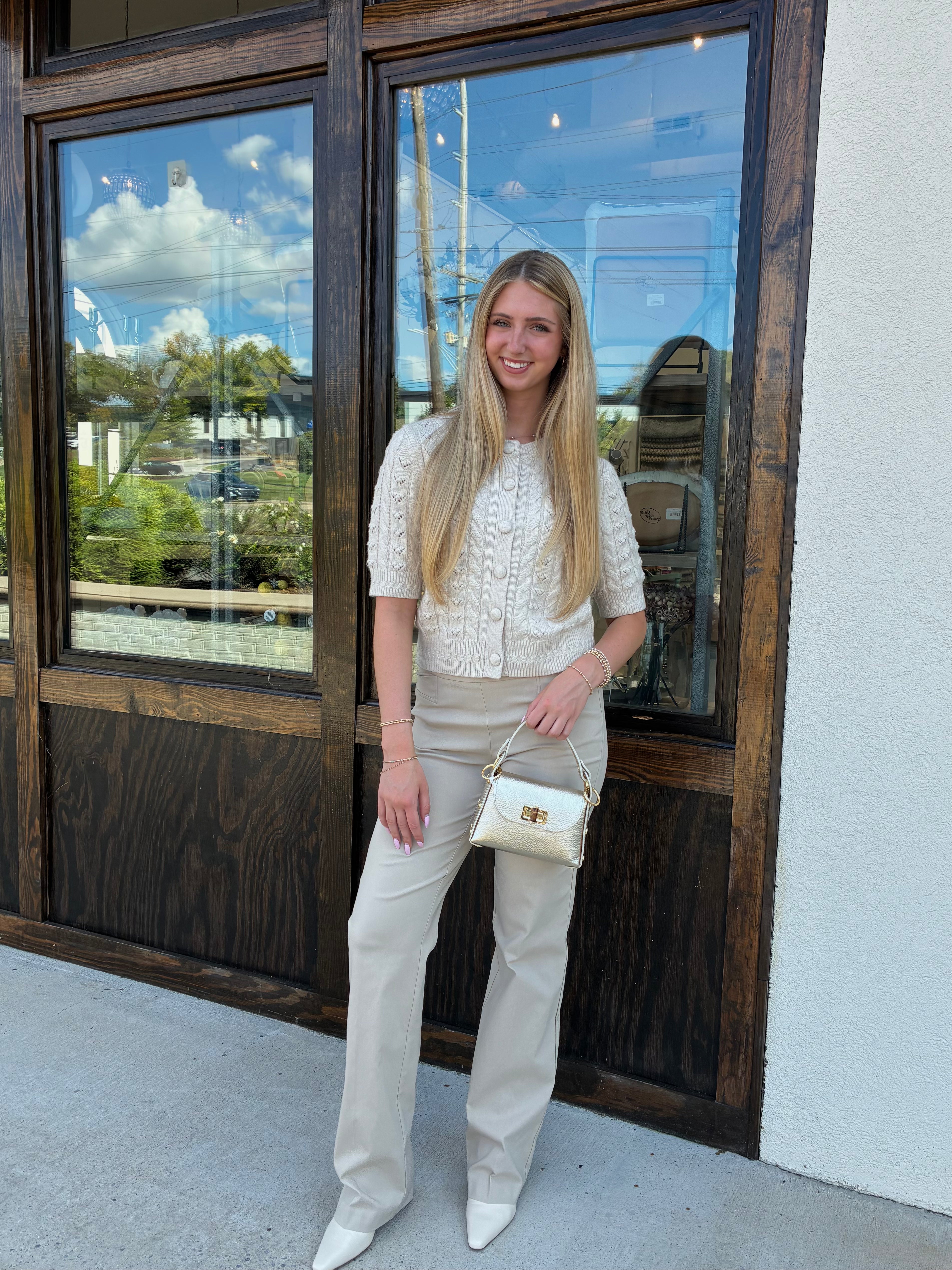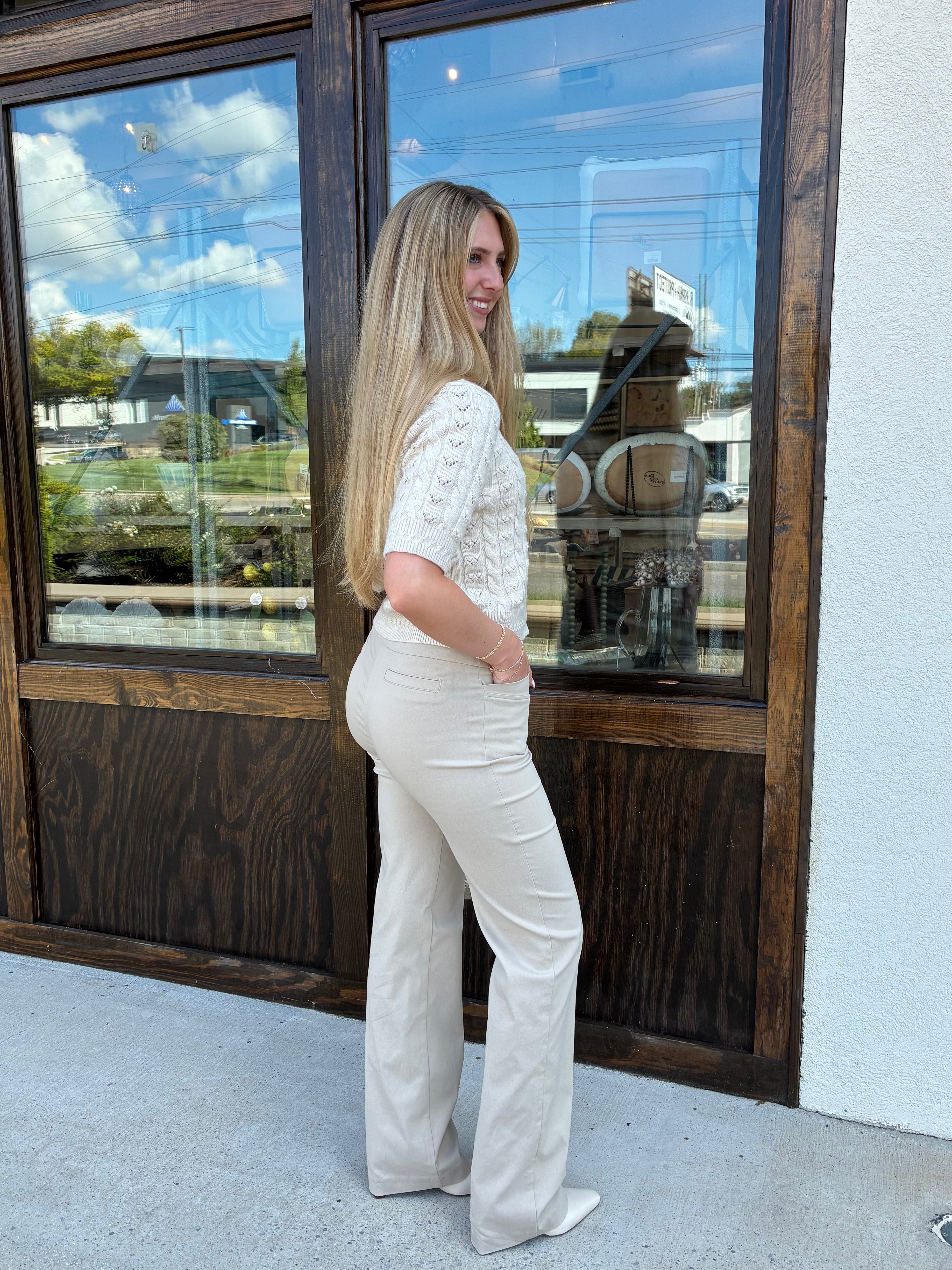 The Woven Pant in Cashew is a neutral wardrobe essential designed for endless versatility. Crafted in a lightweight woven fabric, these pants feature a tailored silhouette with a flattering fit that transitions seamlessly from desk to dinner. The soft cashew hue adds a modern, elevated touch, making them easy to pair with blouses, knits, or jackets for both polished and casual looks.