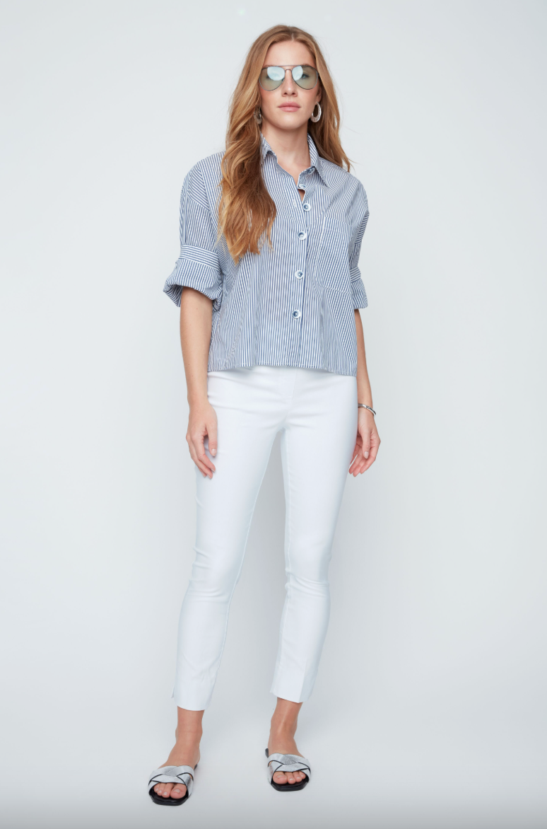 The Renuar Button Down features elegant stripes and refined cuffed sleeve details, offering a polished look that effortlessly elevates your wardrobe. This sophisticated shirt is perfect for both professional settings and stylish everyday wear, combining classic design with subtle modern touches.